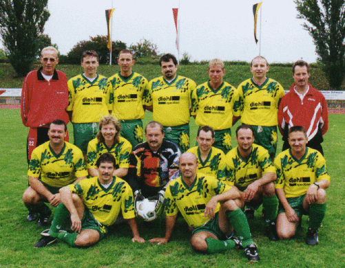hintere Reihe v.l.n.r.: Uli Hinterkopf, Martin Blum, Matthias Hoher, Olaf Metzler, Jens Erwes, Günther Hartmann mittlere Reihe v.l.n.r.: Klaus Braun, Michele Montanaro, Uli Lutz, Roland Würthner, Peter Kneschaurek, Frank Strzelski vordere Reihe v.l.n.r.: Leo Presthofer, Daniel Schnaidt, Peter Damoczi, Karsten Heimerdinger, Heinz Hähn, Hartmut Heckel, Oliver Kühnle es fehlen: Wolfgang Brenner, Patrick Daiß, Jörg Fischer, Wolfgang Gotthardt, Klaus Mayer, Gerhard Michel, Thomas Rist, Thomas Schlatter, Klemens Schwarz, Gregor Steck, Wolfgang Walz Bild 2003